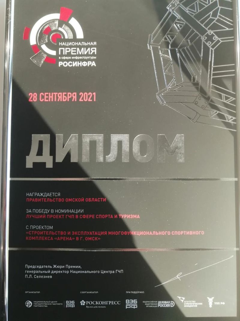 Строительство «Арены-Омск» признано лучшим проектом государственно-частного партнерства в сфере спорта в России