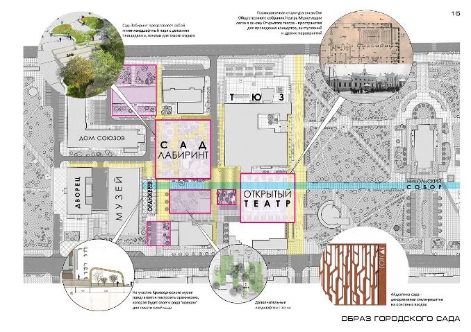 В мэрии сообщили, что сейчас завершается разработка эскизного проекта. В нем восстановлена главная прогулочная аллея сада, сформирован детский сквер-лабиринт вблизи Музыкального училища, открыта событийная площадка с амфитеатром и зрительскими местами на месте здания Общественного собрания, созданы новые точки входа и айдентика Городского сада, развивается музейный блок, улучшено озеленение. В рамках эскиза также решены основные логистические проблемы территории, реорганизованы пешеходные связи, создана безбарьерная среда.