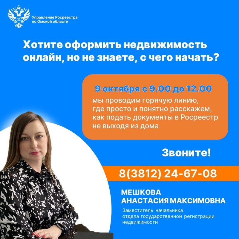 На эти и другие вопросы ответит заместитель начальника отдела государственной регистрации недвижимости Управления Анастасия Мешкова по телефону: 8 (3812) 24-67-08.